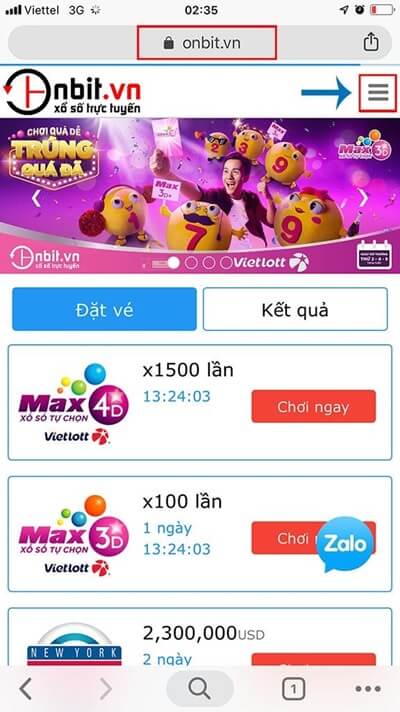 Bước 3: Đăng nhập tài khoản vừa tạo và lựa chọn sản phẩm muốn mua (Power 6/55, Mega 6/45, Max 3D, Max 4D, Keno hay các loại xổ số kiểu mỹ cũng được phân phối tại đây).