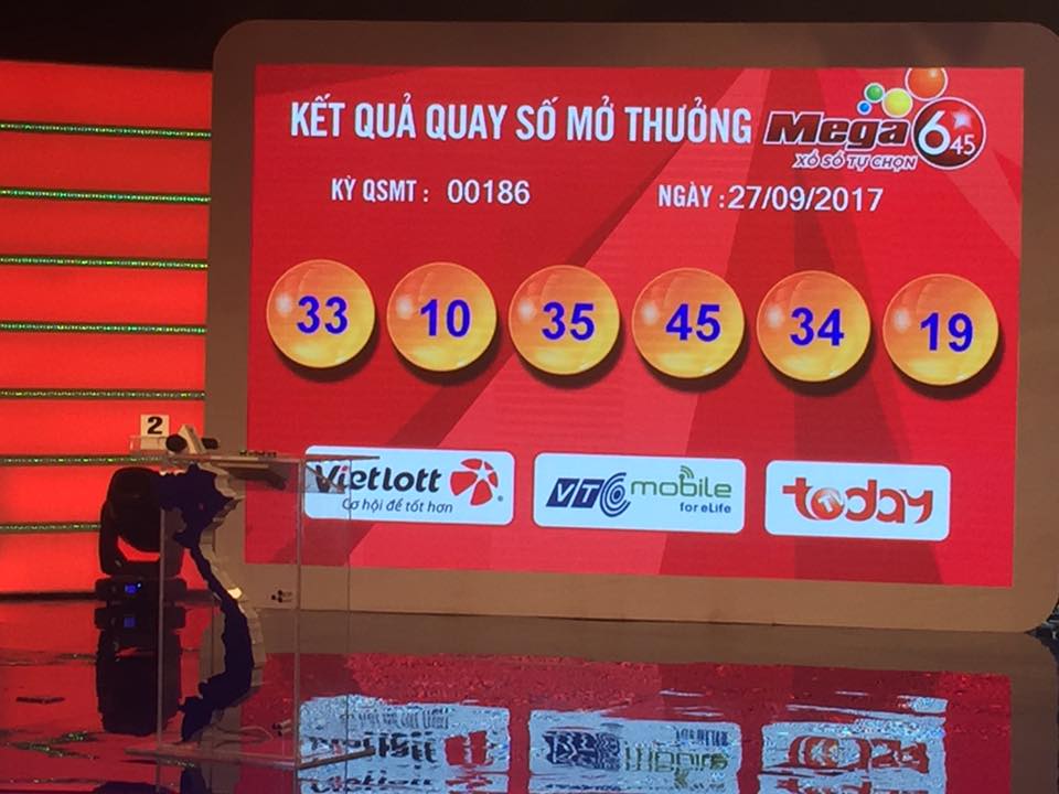 Cụ thể, tối ngày 27/9/2017, dưới dự giám sát của Hội đồng Giám sát xổ số với các đại diện đến từ Bộ Tài chính, Bộ Công an và Bộ VHTT&DL, Công ty Xổ số điện toán Việt Nam (Vietlott) đã thực hiện quy trình QSMT kỳ thứ 186 sản phẩm xổ số tự chọn Mega 6/45. Hội đồng Giám sát xổ số đã xác nhận kết quả kỳ QSMT có bộ số: 10-19-33-34-35-45