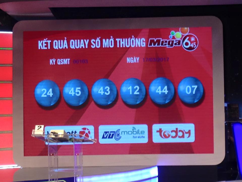 Đã có người trúng giải Jackpot – Mega 6/45 ngày 17-3-2017 theo cập nhật mới nhất từ công ty Vietlott kết quả xổ số kỳ QSMT 103. Tổng giá trị giải thưởng hơn 43 tỷ đồng. Đây là giải thưởng khá lớn so với các kỳ có khách hàng trúng Jackpot gần đây.