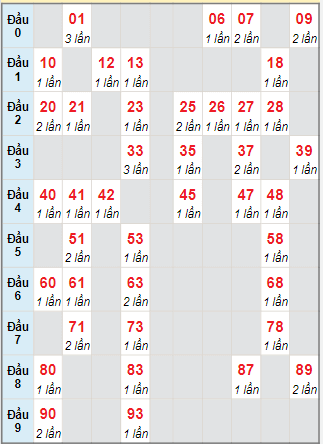 Cầu có vị trí về 4 ngày liên tục: 01, 06, 09, 18, 20, 28, 33, 48, 53, 58, 73, 83, 90