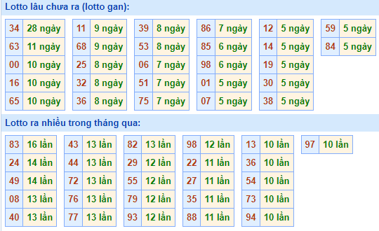 ⇒ Xem bảng tần suất lô miền Bắc từ 00 đến 99 trong tháng chi tiết nhất tại: