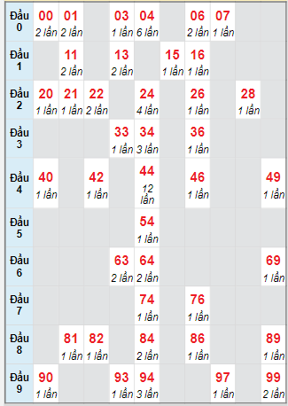 Cầu lô tô tại vị trí ăn 4 ngày liên tiếp: 00, 04, 07, 11, 13, 15, 16, 20, 22, 24, 33, 34, 40, 44, 49, 74, 81, 93, 94