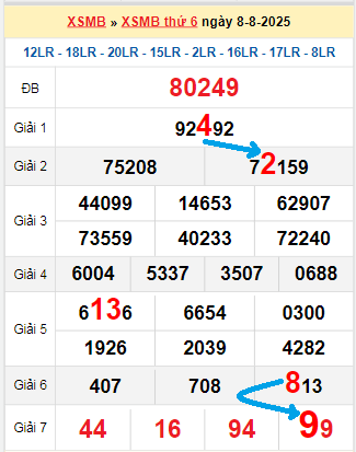 Kết quả xổ số miền Bắc ngày 8/8/2025