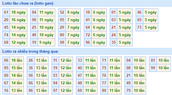 Lô tô gan lâu ra nhất: 61 - 20 - 45 - 74 - 68 - 84 - 90