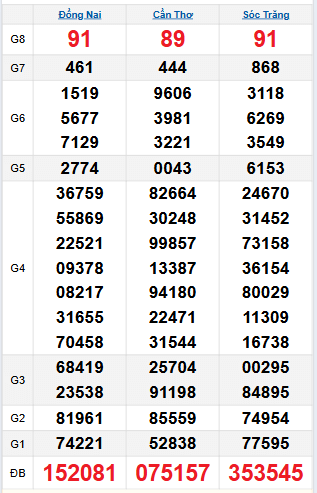 Thống kê giải tám Đồng Nai:39 - 24 - 16 - 25 - 45 - 90 - 22