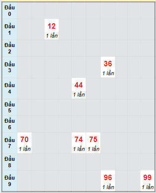TK 2 số cuối giải ĐB: 77 - 11 - 74 - 00 - 50 - 42 - 49