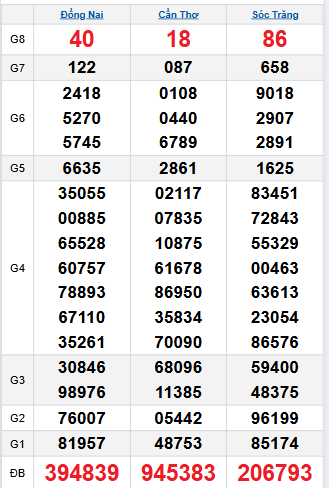 Thống kê giải tám Đồng Nai: 71 - 83 - 29 - 27 - 82 - 34 - 94