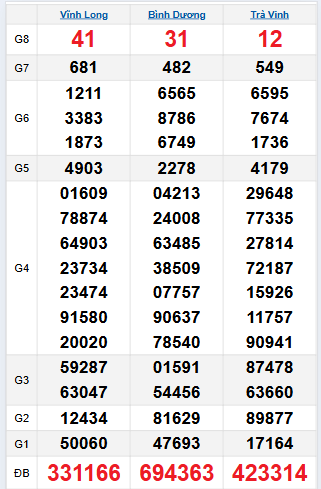 Thống kê giải tám Vĩnh Long: 04 - 95 - 31 - 14 - 00 - 22 - 14