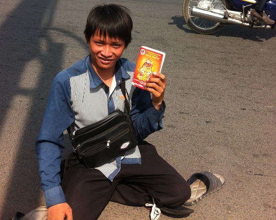 Từng phải khóc tức tưởi khi toàn bộ vé số bị kẻ gian lấy mất, hiện Nguyễn Thanh Trung vui tươi hơn khi bán được nhiều vé dịp Tết Bính Thân.