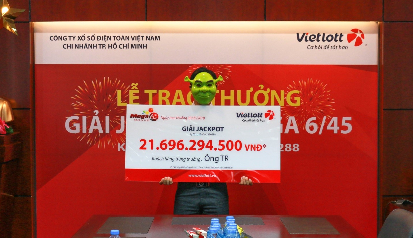 Ngày 30/5/2018, Chi nhánh Tp. Hồ Chí Minh (thuộc Vietlott) đã tiến hành thực hiện buổi lễ trao giải thưởng Jackpot sản phẩm Mega 6/45 kỳ QSMT số 288. Ông T.R. là vị khách hàng may mắn đã lĩnh thưởng hơn 21 tỷ đồng (chưa khấu trừ thuế thu nhập cá nhân).