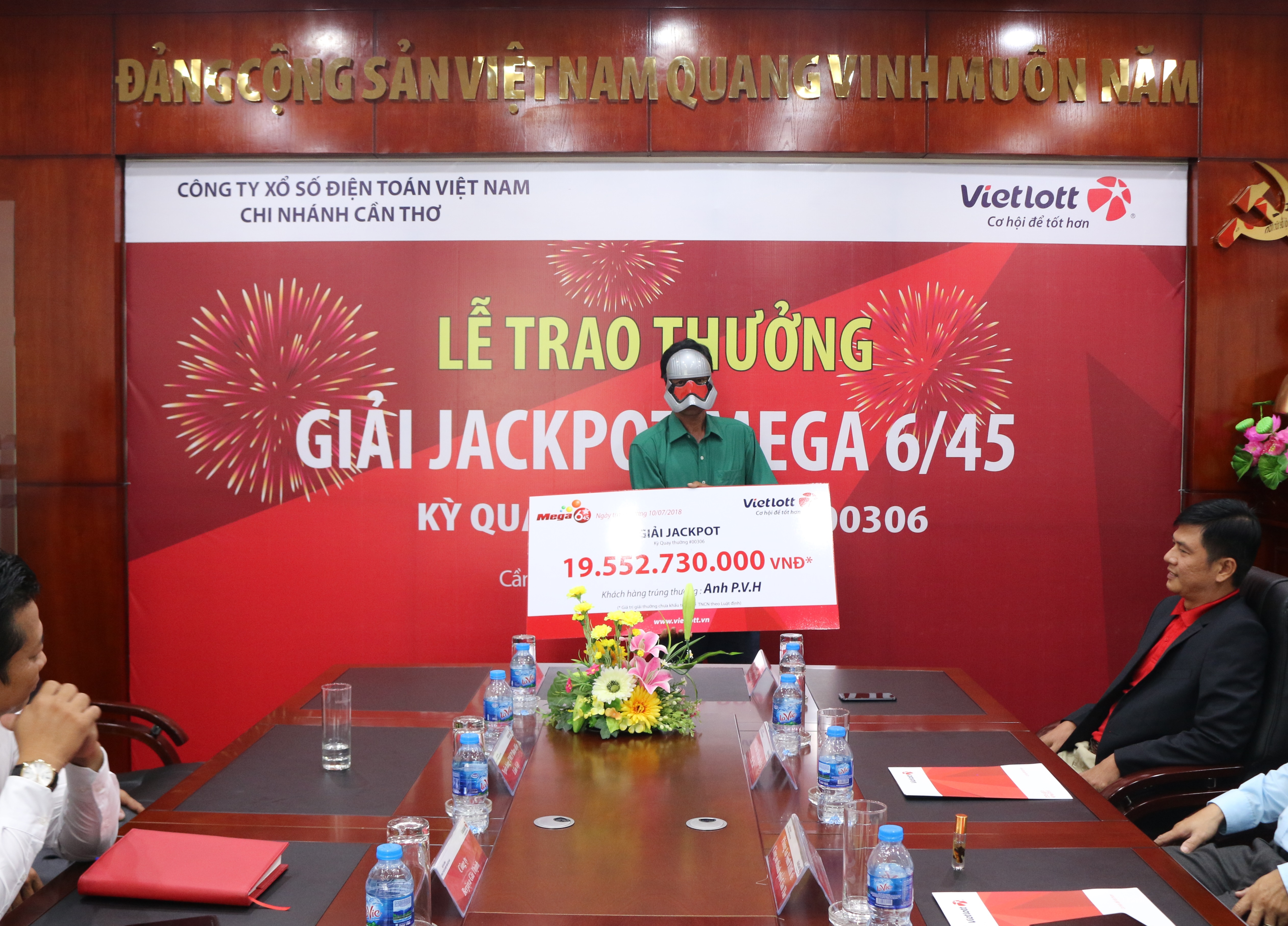 Chi nhánh Cần Thơ thuộc Vietlott ngày 10/7/2018, đã trao giải thưởng Jackpot sản phẩm Mega 6/45 kỳ QSMT số 306. Anh P.V.H đến từ Sóc Trăng đã lĩnh thưởng hơn 19 tỷ đổng(chưa khấu trừ thuế thu nhập).
