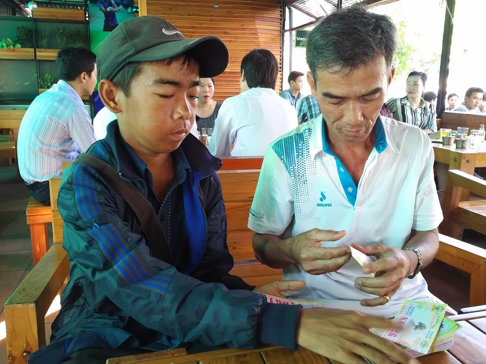 “Trừ những ngày chạy thận, thời gian còn lại em cố gượng dậy để đi bán vé số tại các quán cà phê quanh bệnh viện đa khoa Quảng Nam. Bình quân mỗi ngày bán vé xổ số cũng được 70.000 đồng. Số tiền đó em cất 20.000 đồng để dành ghép thận. Số còn lại em mua thêm thuốc uống”- Sang kể.