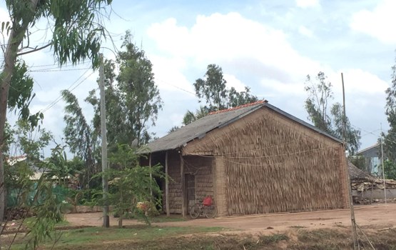 Căn nhà chị Diệu chỉ với mái tôn, vách lá, nằm bên bờ bao đất đỏ. Bản thân chị Diệu không có nghề nghiệp gì ổn định. Hằng ngày chị đi làm thuê, làm mướn như chầm lá dừa nước, hái ớt thuê…