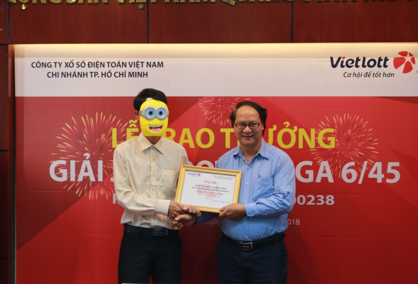 Ngày 31 tháng 01 năm 2018 tại TP.Hồ Chí Minh, Công ty Xổ số điện toán Việt Nam (Vietlott) đã tổ chức Lễ trao giải Jackpot sản phẩm Mega 6/45 kỳ QSMT 238 ngày 26/1/2018 cho ông XĐ đến từ Đồng Nai