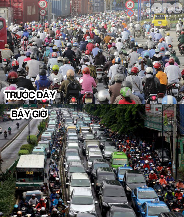 Tình trạng kẹt xe vẫn còn. Chỉ khác là thay vì xe gắn máy chiếm đa số thì nay nhường chỗ lại cho xe hơi.