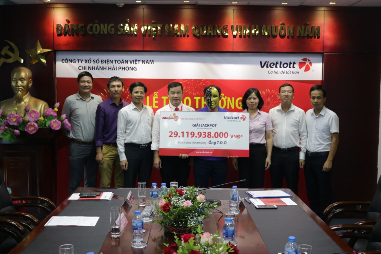 Trước đó, Chi nhánh Hải Phòng (thuộc Vietlott) đã tiếp nhận vé trúng thưởng từ anh T.D.O. Qua kiểm tra trên hệ thống kỹ thuật và hồ sơ kèm theo, Vietlott xác định chiếc vé đã trúng giải Jackpot sản phẩm Mega 6/45 kỳ QSMT thứ 464 ngày 10/7/2019 với giá trị giải là 29.119.908.000 đồng (chưa khấu trừ thuế thu nhập cá nhân theo quy định nhà nước). Vé trúng thưởng được phát hành tại Điểm bán hàng số Tầng 1 tòa nhà Elcom, Ngõ 15 Duy Tân, Dịch Vọng Hậu, Quận Cầu Giấy, Hà Nội.