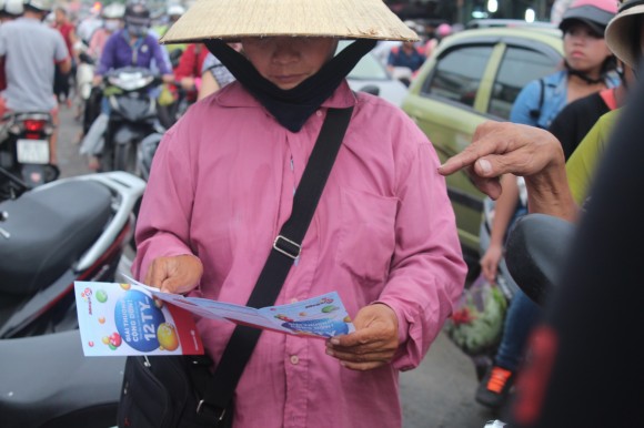 Một phụ nữ bán vé số dạo vào thử vận may với vé số ‘triệu đô’ nói: “thấy vé số này lạ hơn với vé số truyền thống, mà cũng dễ trúng nên tui vào đây để thử vận may” .