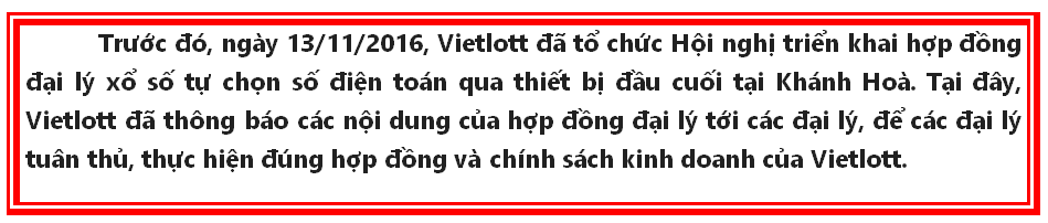 Ngày 14/11/2016, tại thành phố Nha Trang, Công ty Xổ số điện toán Việt Nam (Vietlott) tổ chức Lễ vận hành hệ thống kinh doanh xổ số tự chọn số điện toán nhằm đa dạng nhu cầu vui chơi giải trí lành mạnh của người dân tỉnh Khánh Hòa.